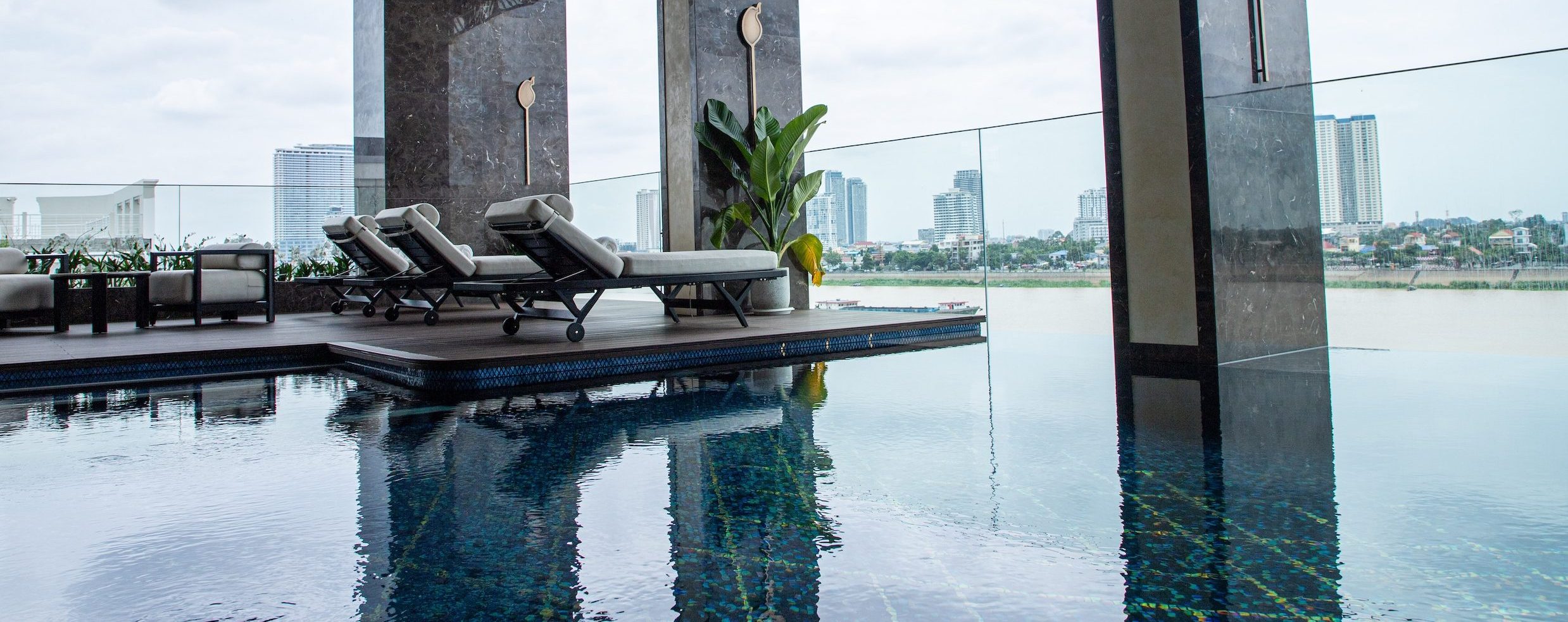 Our saltwater pool is more than a space to unwind β itβs a design statement. The mosaic flooring evokes Khmer silk patterns, blending movement, heritage, and relaxation.